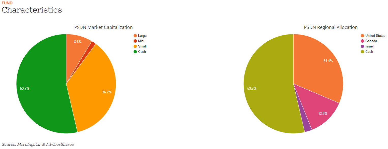 AdvisorShares Poseidon Dynamic Cannabis ETF (PSDN). The ETF launched on 11/16/21. As of 12/1/21, the ETF has $2.7M AUM (vs. $1.1B for MSOS). The ETF currently invests in U.S., Canadian, and Israeli based Cannabis companies and employs 1.5x Leverage. Current top holdings include GTI (13.0%) , Trulieve (10.3%), AWH (7.4%), WM Technology (7.1%) and AYR Wellness (7.1%).