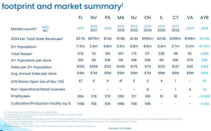 Ohio and Pennsylvania: Targeting eight AYR-branded stores open in first half 2025 (3 open today), leveraging additional licenses awarded as part of the
