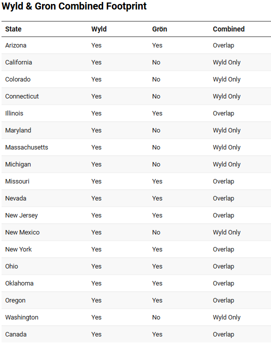 Consolidation of the âOregon Powerhousesâ: Both brands were founded in Oregon and have followed similar aggressive multi-state expansion strategies. The acquisition allows Wyld to consolidate market share in âoverlapâ states where both brands already command significant shelf space, particularly in mature markets like Arizona, Oregon, and Nevada. In mature markets like Colorado, Nevada, and Oregon, Wyld already commands over 30% of the edibles category. 1 Adding Grönâs double-digit share effectively creates a near-monopoly on shelf space for premium edibles in these regions.