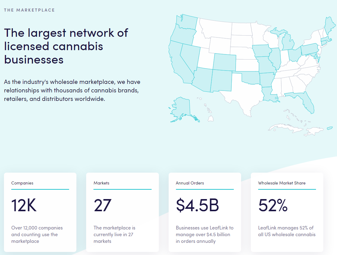Wholesale Cannabis Marketplace Dominance & Improved Monetization. Artie mentions that LeafLinkās marketplace stands out because of its market share ($5B Wholesale GMV and ~50% market share) and potential to further monetize. He believes the Company has under-monetized its products and services, relative to other marketplaces. Though the company has experience in marketplace, payments, logistics, data, advertising, and bankingāit has yet to bring all this together holistically. But will focus on doing so going forward. The Company plans to deliver a tremendous amount of value at a reasonable price point to further improve their stickiness with customers and win over potential customers. LeafLink wants to be the go-to for Cannabis wholesale order lifecycle and take over the backoffice from when an order is created, to how itās paid for and delivered.
